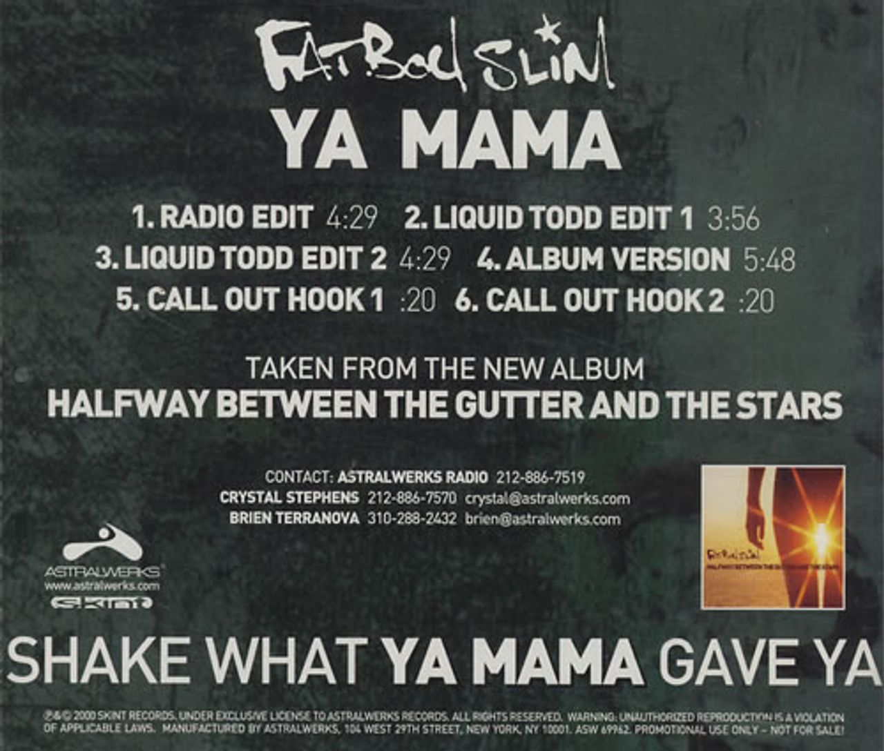 FATBOY SLIM Ya Mama (2000 US advance promotional 6-track CD