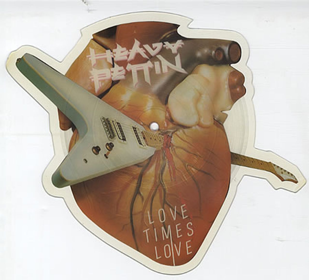 HEAVY PETTIN Love Times Love (1984 UK limited edition shaped 7" Picture Disc single, produced by Brian May, also includes Shout It Out HEPP3)
