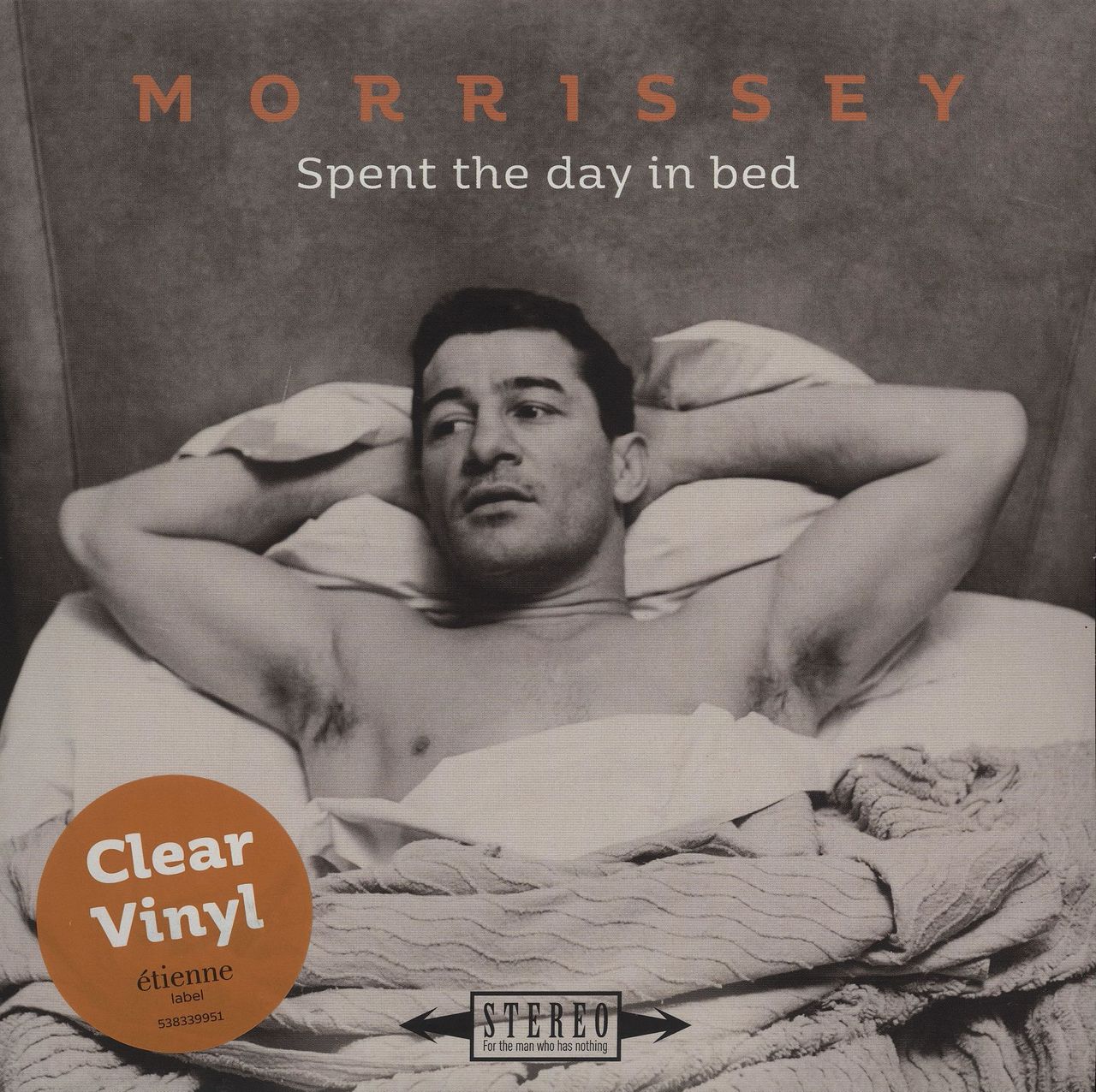 MORRISSEY Spent The Day In Bed (2017 UK limited edition 2-track 7" single pressed on Clear Vinyl, also including a live cover version of The Ramones' Judy Is A Punk. The vinyl looks barely played housed in a hype-stickered picture sleeve featuring an image of Rocky Graziano taken by Stanley Kubrick!)