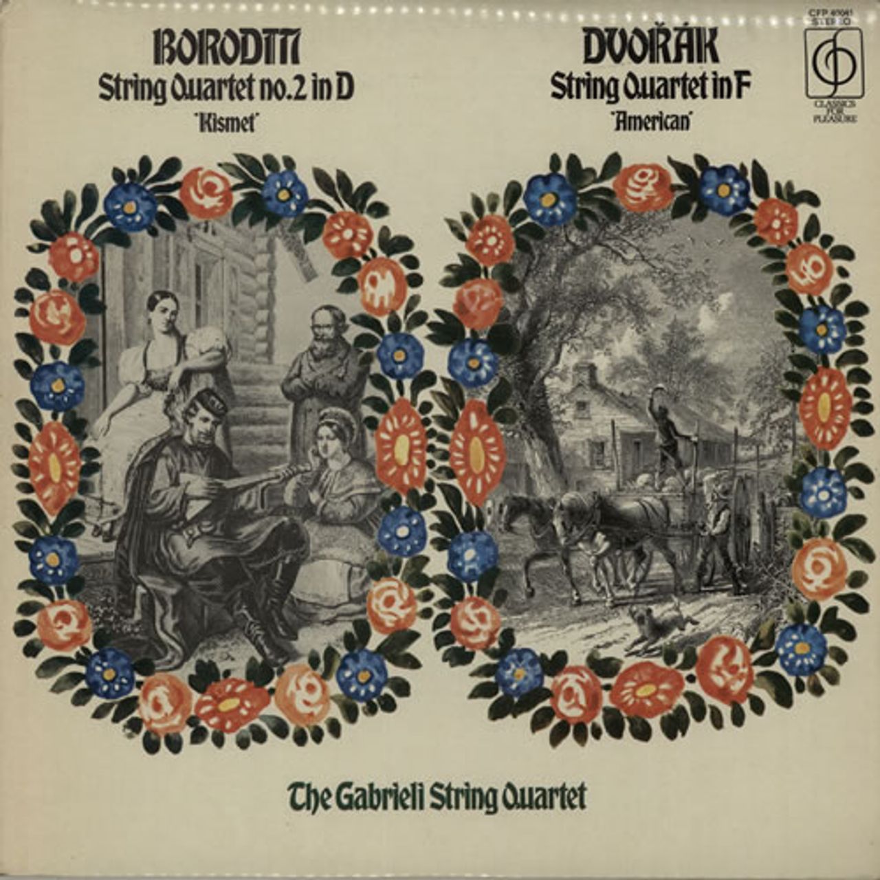 THE GABRIELI STRING QUARTET Borodin: String Quartet No. 2 in D 'Kismet' / Dvorák: String Quartet In F 'American' (1973 UK stereo vinyl LP, front laminated picture sleeve. Despite a sticker mark to the reverse, the sleeve shows just light shelfwear with a small annotation to the back & the vinyl remains near 'as new' with little sign of play CFP40041)