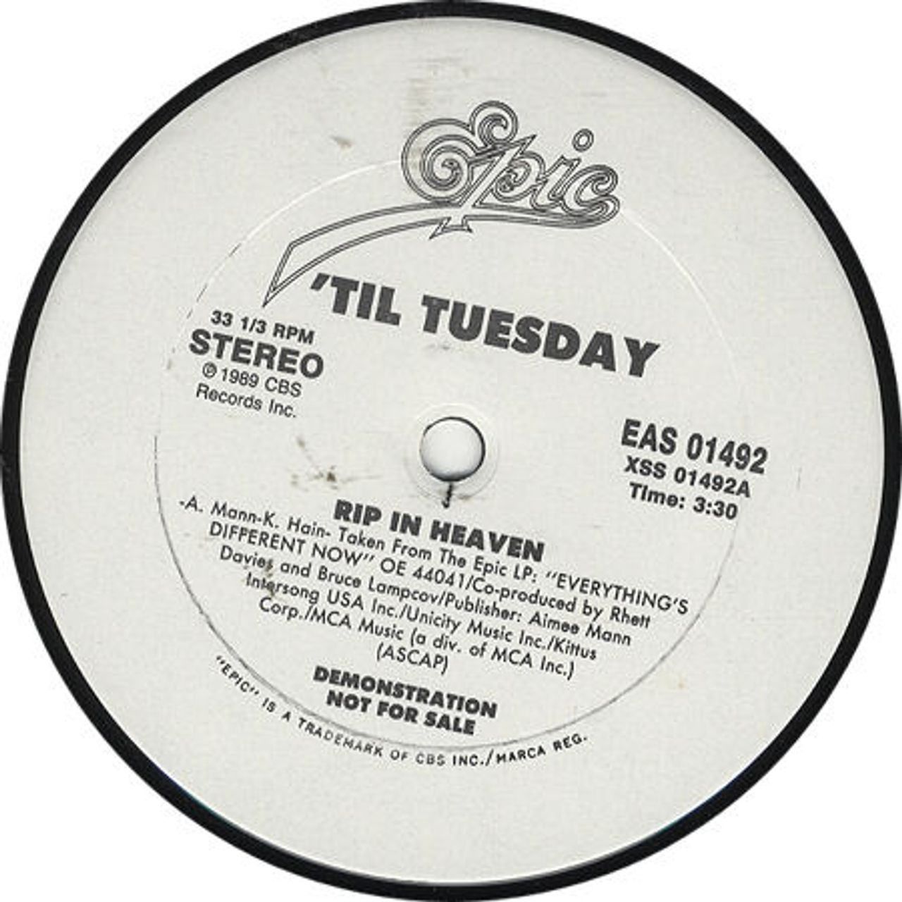Til Tuesday Rip In Heaven US Promo 12" vinyl
