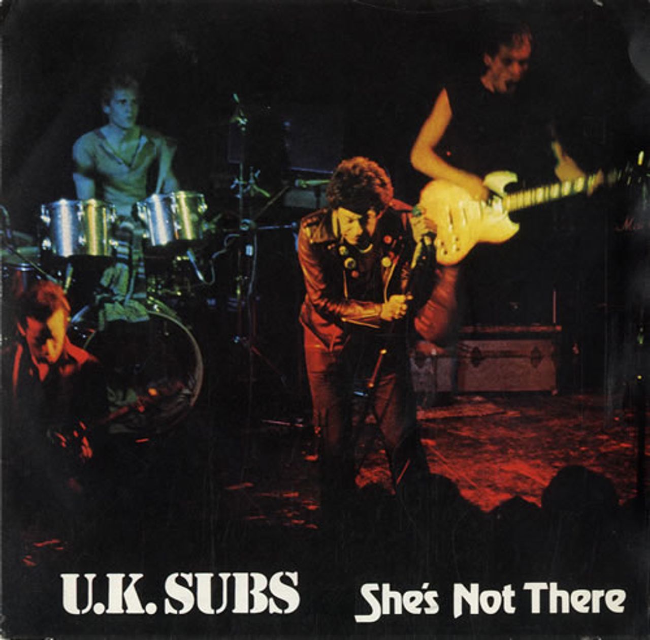 UK SUBS She's Not There (1979 UK 4-track 7" vinyl EP, also including Kicks, Victim and The Same Thing, picture sleeve. There is just a little shelfwear to the edges of the sleeve and despite some light surface scuffs showing evidence of play, the vinyl remains in excellent condition GEMS14)