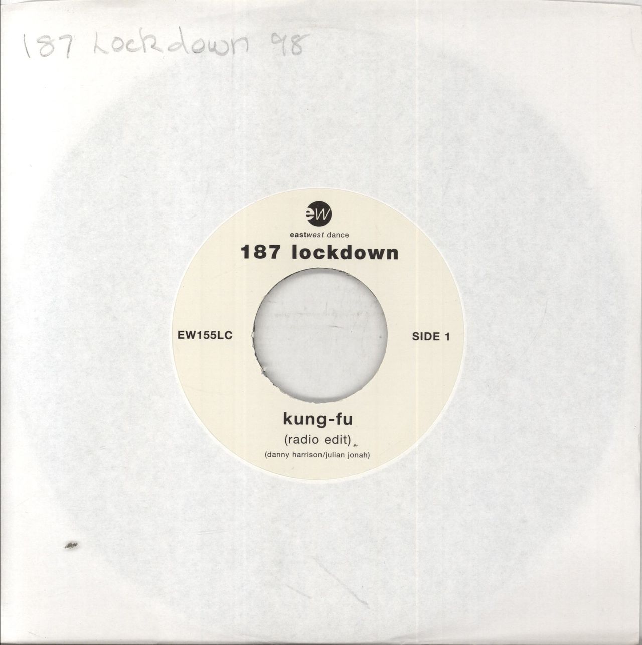 187 LOCKDOWN Kung-Fu (1998 UK wide centre vinyl 7" for the single release, pressed exclusively for jukebox use with custom black on white labels and never commercially released, featuring the Radio Edit and Prisoners Of Technology / TMS 1 Remix One, in a plain die-cut paper sleeve)