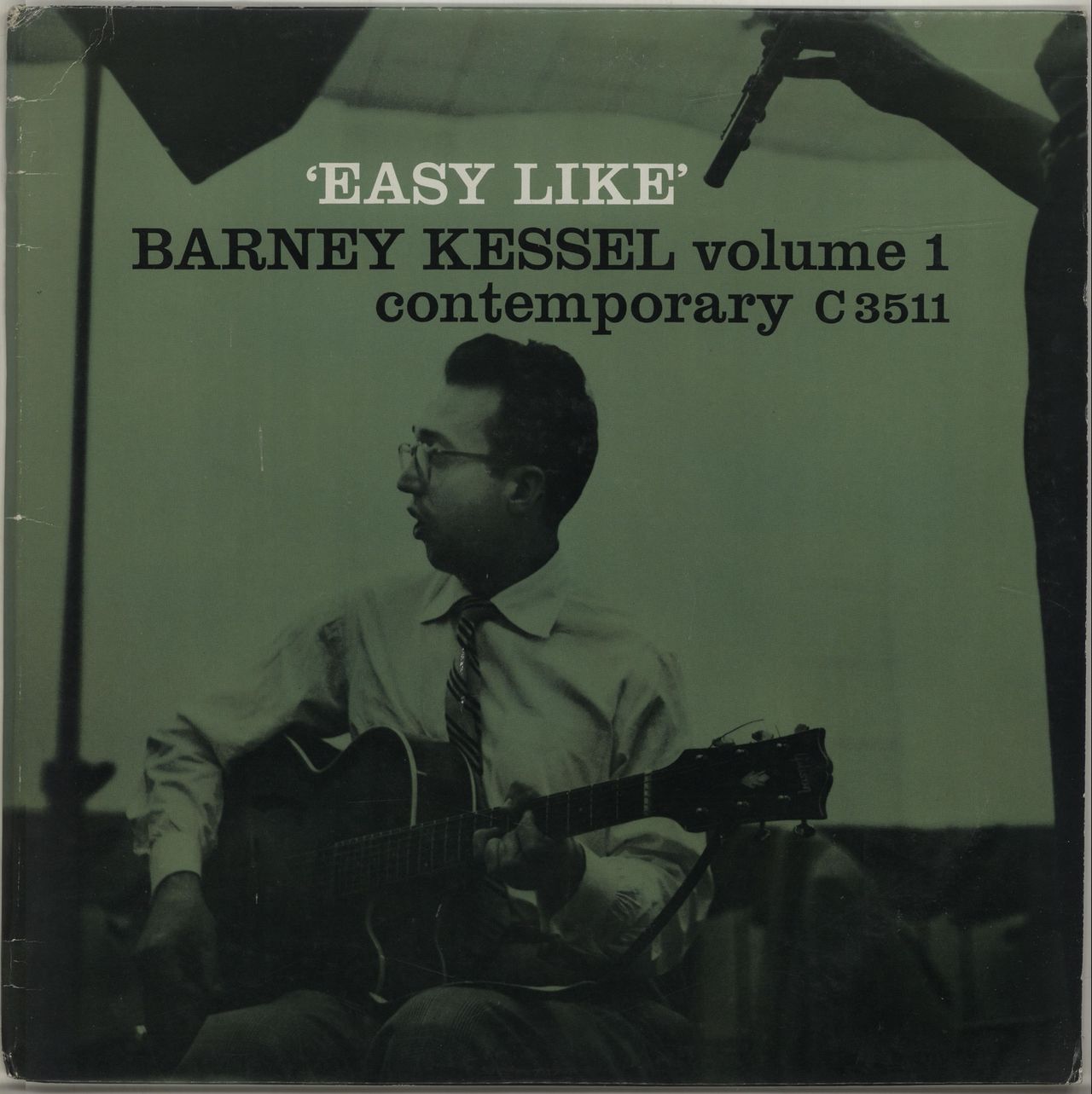 BARNEY KESSEL Volume One: Easy Like (1984 US issue of the 1956 12-track mono vinyl LP, Barney's first session as a leader marking his longterm association with Contemporary Records, also starring Bud Shank or Buddy Collette, Arnold Ross or Claude Williamson, Harry Babsin or Red Mitchell and Shelly Manne, pasted picture sleeve. The sleeve shows light wear with a corner crease, whilst the vinyl is Excellent with little sign of play OJC-153)