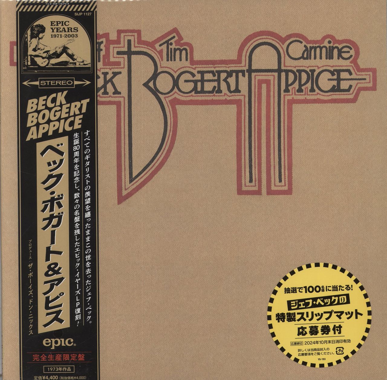 BECK, BOGERT & APPICE Beck, Bogert, Appice (2024 Japanese exclusive limited edition 9-track vinyl LP matered & pressed in Japan. Originally released in 1973. Housed in a heavy card textured picture sleeve with fold-out lyric insert and the all-important exclusive 'Epic Years 1971-2003' obi-strip, in the hype stickered re-selable bag. Please note, we have removed the vinyl from the sleeve, and will be shipped outside of the sleeve, but remains in a brand-new shop bought, unplayed condition SIJP1127)
