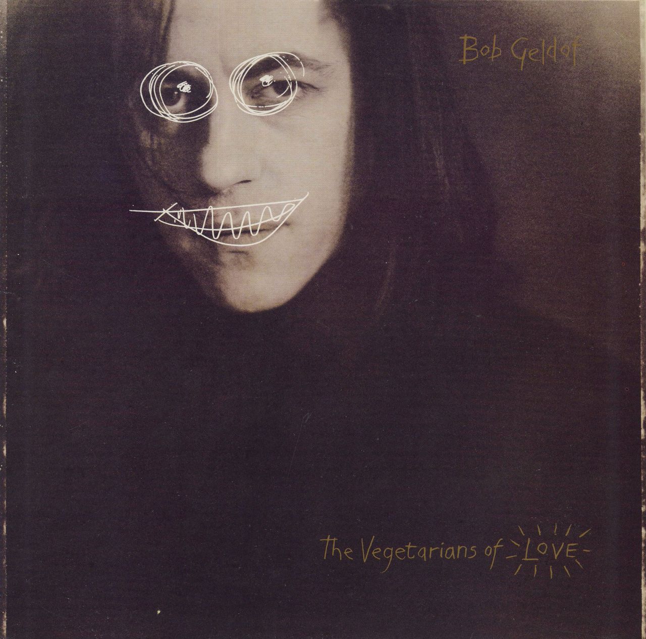 BOB GELDOF The Vegetarians Of Love (1990 UK 12-track vinyl LP including The Great Song Of Indifference. The glossy picture sleeve has a little shelfwear to the edges and comes with the illustrated lyric inner whilst the vinyl shows light signsof play)