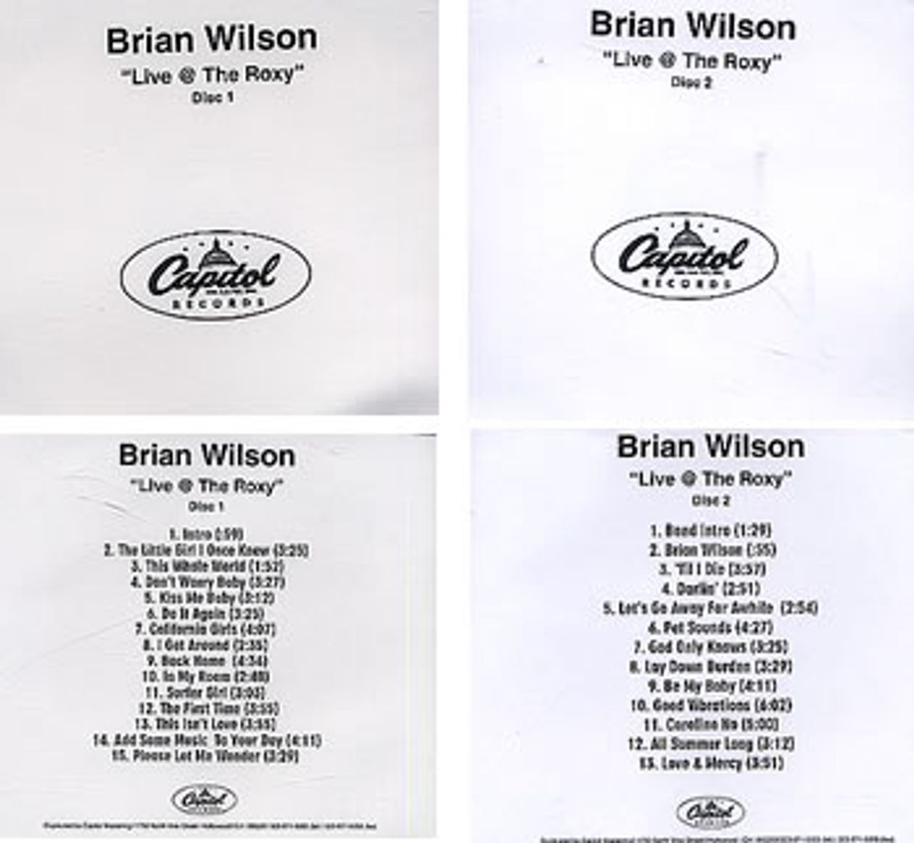 BRIAN WILSON Live @ The Roxy (Rare 2001 US 28-track, originally internet-only, promotional Capitol label double CD-R acetate set, this is one of only five Capitol CD-Rs rumoured to have been pressed, custom printed discs and tracklisted inlays)