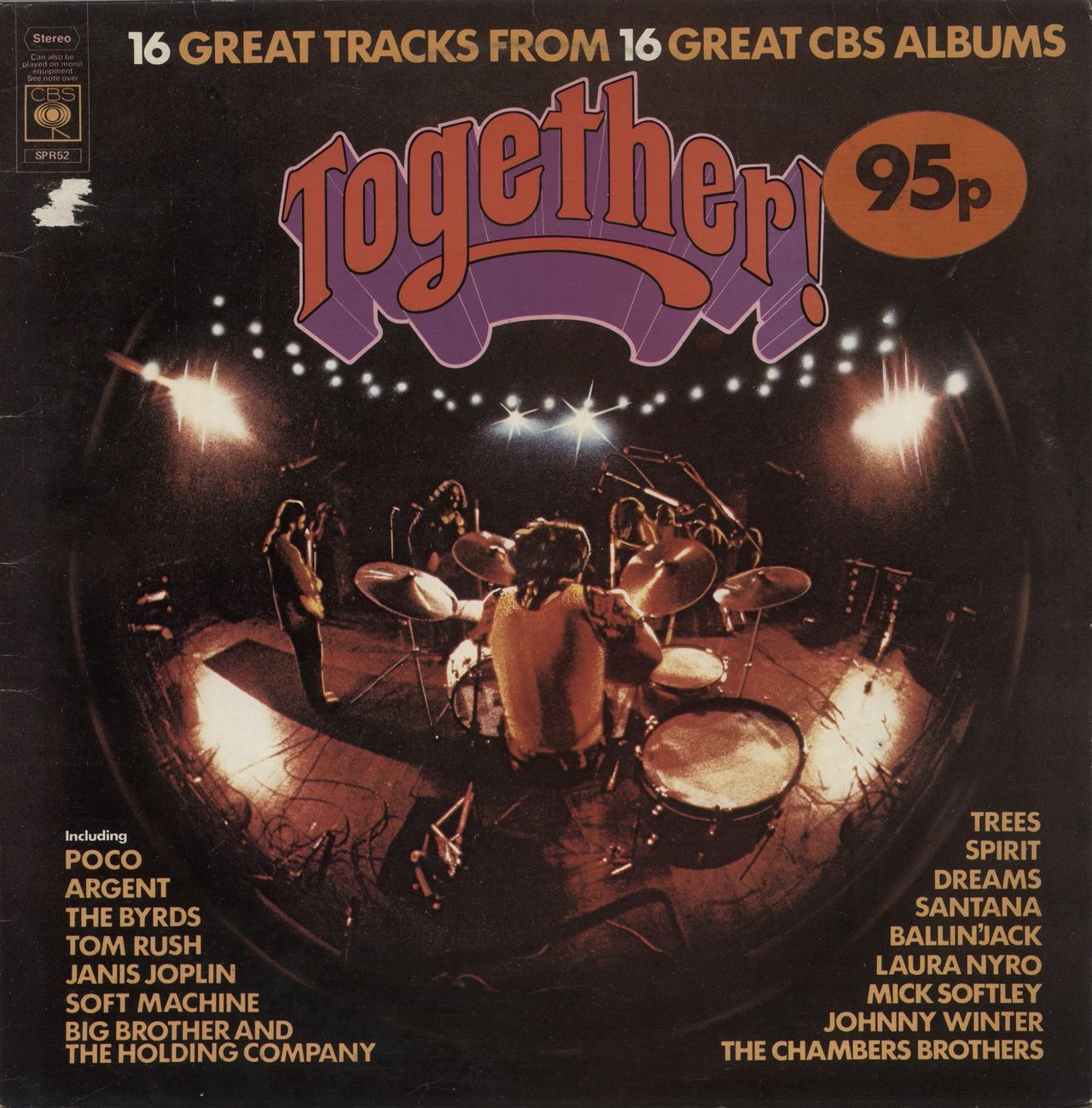 VARIOUS ARTISTS Together (1971 UK 16-track record label sampler LP pressed on BLUE vinyl, featuring material from Johnny Winter, Janis Joplin, Santana, Argent, Soft Machine, Trees, The Byrds, Spirit and more, picture sleeve with discography on the reverse and vintage price sticker. The sleeve shows some ring & edgewear and a small sticker removal mark, whilst the vinyl shows only minor signs of play. Also includes the 8-page 'Together' newspaper - Issue no 1 April 1971 SPR52)