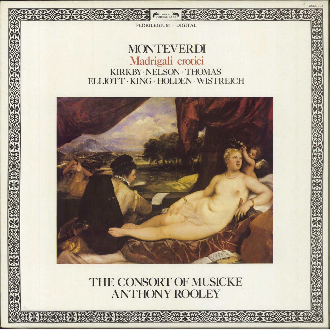 THE CONSORT OF MUSICKE conducted by ANTHONY ROOLEY Madrigali Erotici (1982 UK Digitally Recorded Stereo LP, complete with fold out illustrated libretto in English, French & German, picture sleeve with credits insert DSDL703)