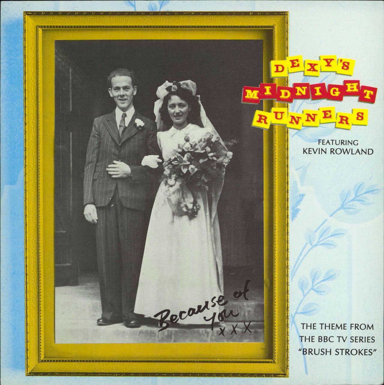 DEXYS MIDNIGHT RUNNERS Because Of You (1986 UK 7" vinyl single featuring the classic theme song from BBC TV's Brush Strokes, also including Kathleen Mavourneen. The picture sleeve lists Dexy's Midnight Runner's as the main artist [featuring Kevin Rowland] on the front and remains in excellent condition with the vinyl showing just light play BRUSH1)