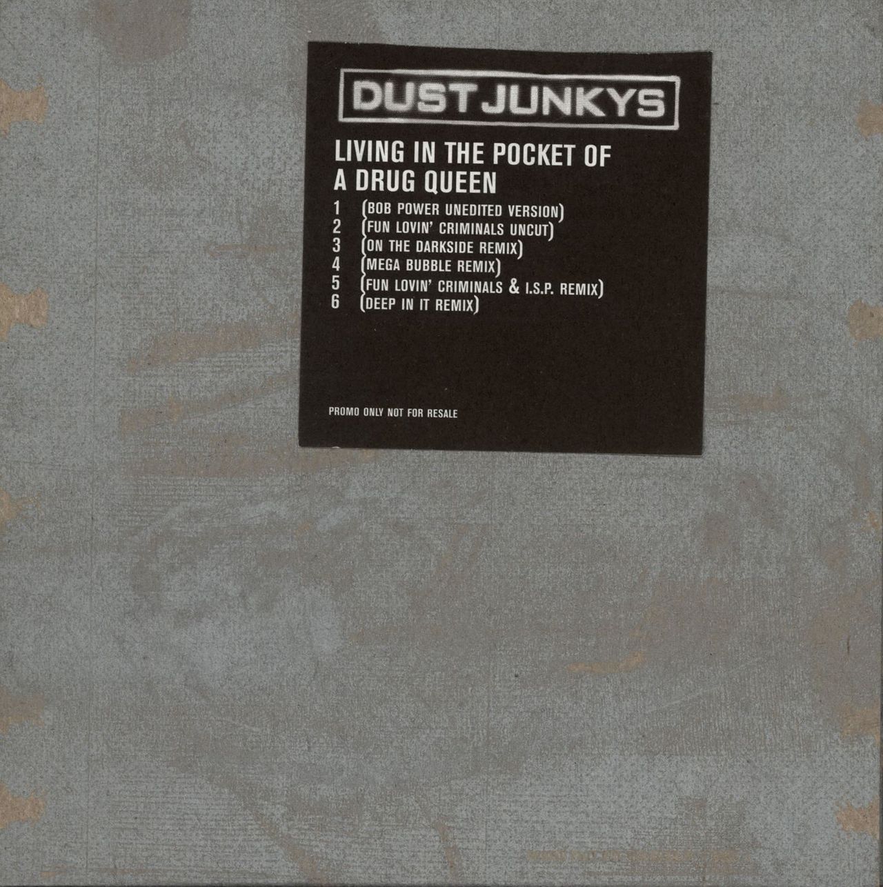 DUST JUNKYS Living In The Pocket Of A Drug Queen (1997 UK 6-track promotional CD for the siingle, including 808 Power Unedited Version, Fun Lovin' Criminals Uncut, On The Darkside Remis and Deep In It Remix, housed in a custom tracklisting stickered card sleeve DUST4)