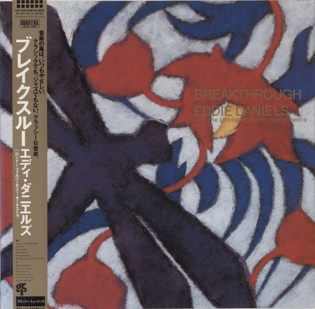 EDDIE DANIELS with the LONDON PHILHARMONIC ORCHESTRA Breakthrough (Scarce 1985 Japanese 6-track 'Digital Remix' vinyl LP, housed in a wonderful picture sleeve with unique silk laminated wraparound artwork, album notes/credits in gold, complete with illustrated insert, additional Japanese translated insert & gold obi. The packaging displays some light general wear and the vinyl has minimal signs of play VIP-28129)