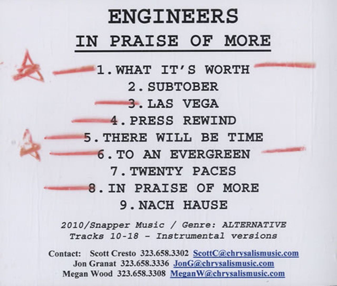 Engineers In Praise Of More - Instrumental US Promo CD-R acetate