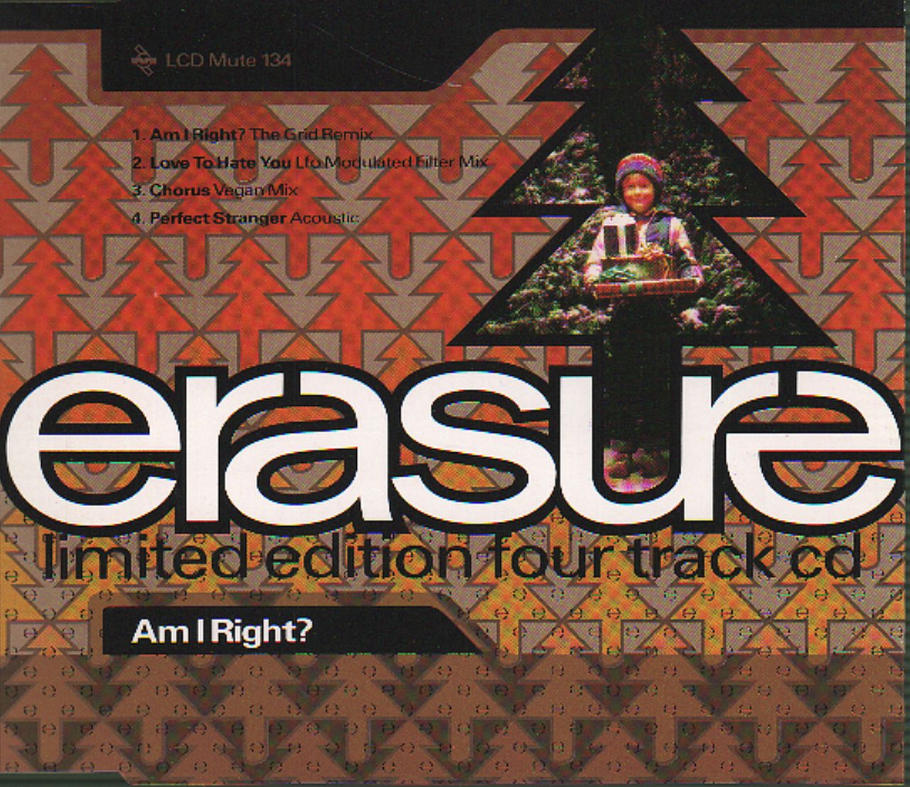 ERASURE Am I Right? (1991 UK limited edition 4-track CD single featuring The Grid Remix, Chorus Vegan Mix & Perfect Stranger Acoustic version, picture sleeve LCDMUTE134)
