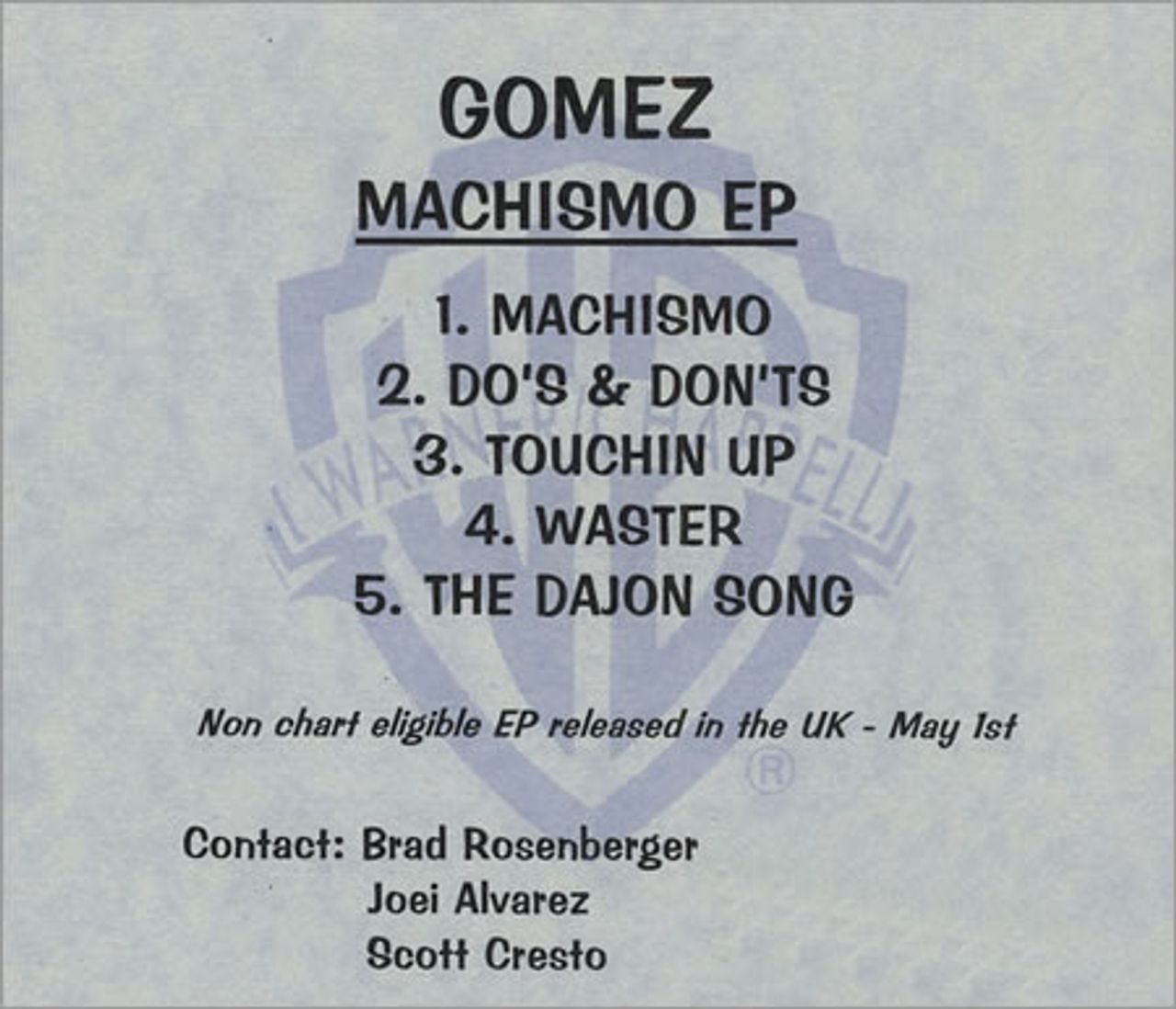 GOMEZ Machismo EP (Official 2000 US Virgin label 5-track promotional only CD-R acetate includes Machismo, Do's And Don'ts, Touchin' Up, Waster and The Dajon Song. Custom printed disc complete with a title/tracklisting inlay back insert)
