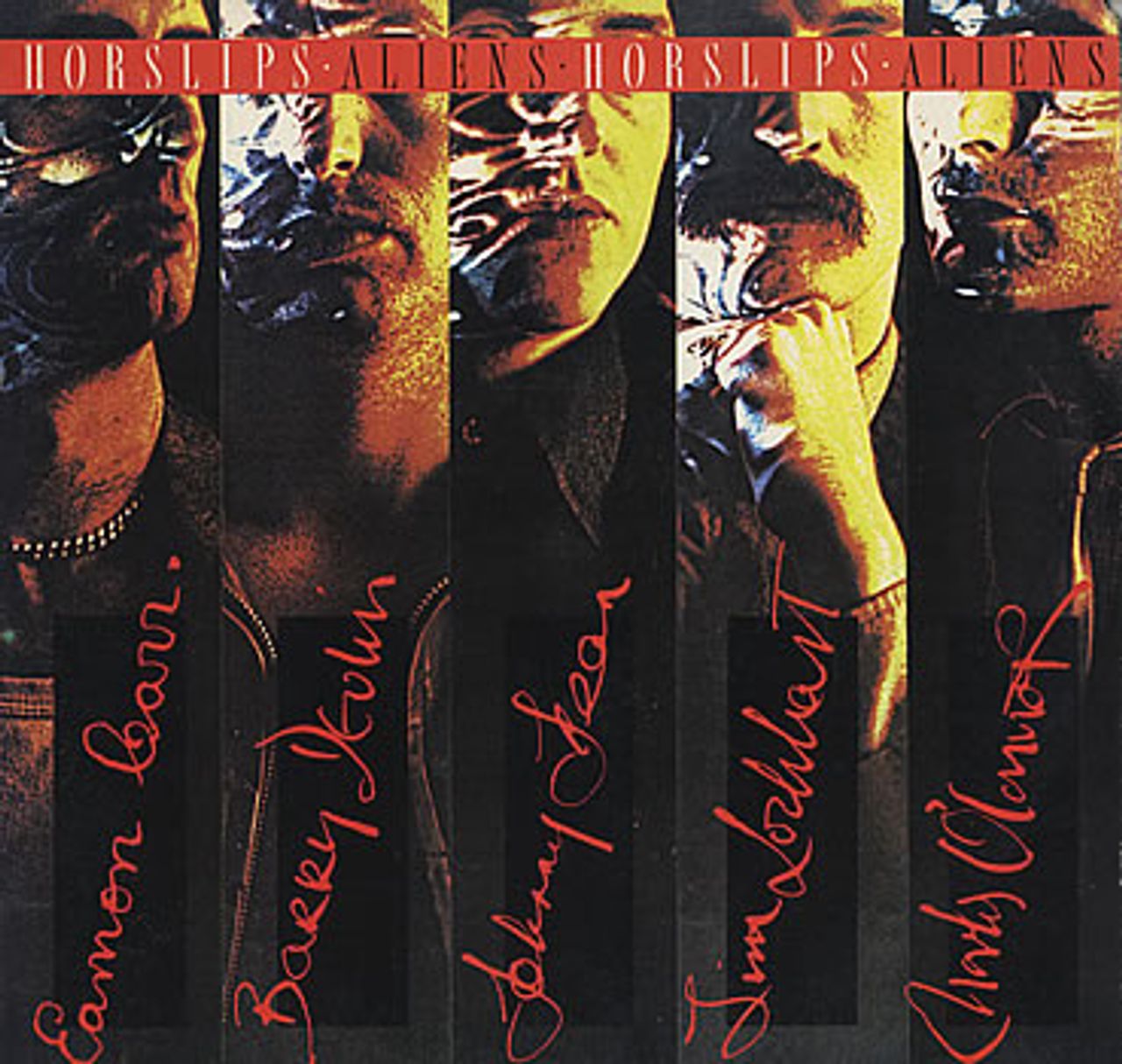 HORSLIPS Aliens (1977 US DJM label 11-track LP, picture sleeve with a deletion clipped corner complete with lyric inner. The sleeve has some minor shelfwear mostly on the edges, the vinyl has only a few light surface marks, overall excellent DJLPA-16)