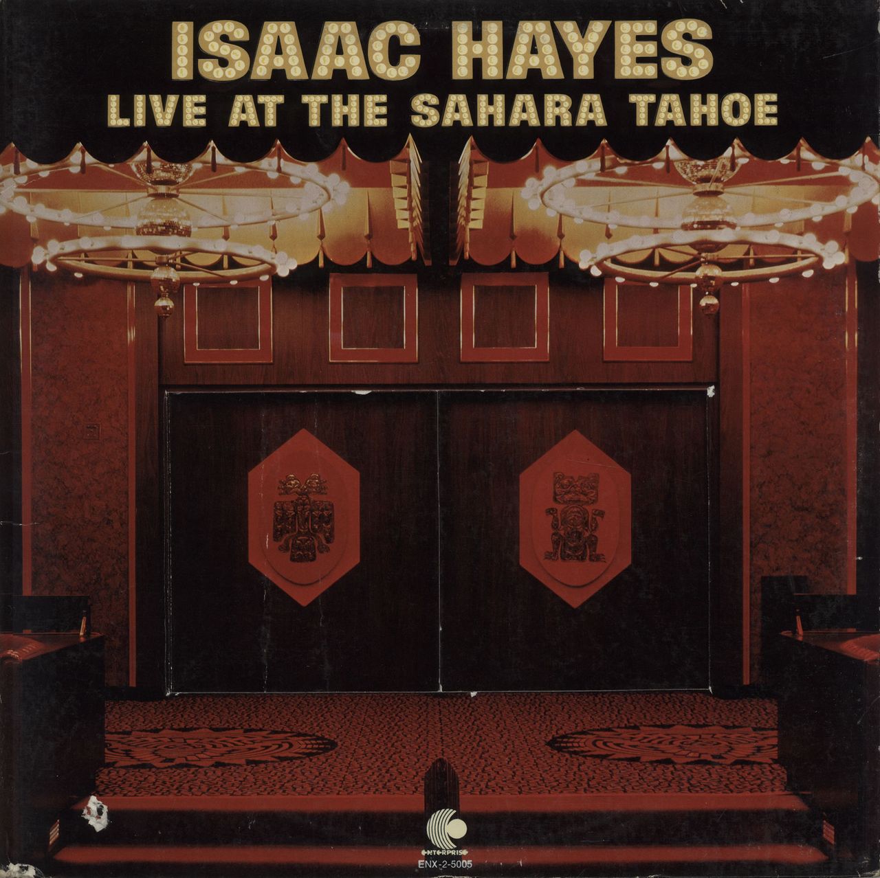 ISAAC HAYES Live At The Sahara Tahoe (1973 US 19-track double live LP, complete with full colour illustrated credits inners, embossed gatefold picture sleeve with die cut opening windows on the front . The sleeve shows some scuffing to the corners and a small tear to one of the windows plus a little light shelfwear, the vinyl,however, remains in excellent condition with few signs of play ENX-2-5005)