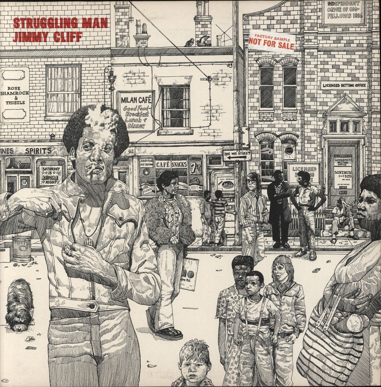 JIMMY CLIFF Struggling Man (Late '70s 'blue sunset' Island label issue of the 1973 10-track vinyl LP, matt full colour picture sleeve with Factory Sample sticker and die-cut card inner. Classic collection encompassing reagge, soul, gospel andfolk. The sleeve shows barely ANY evidence of wear and the vinyl looks unplayed - nice! ILPS9235)