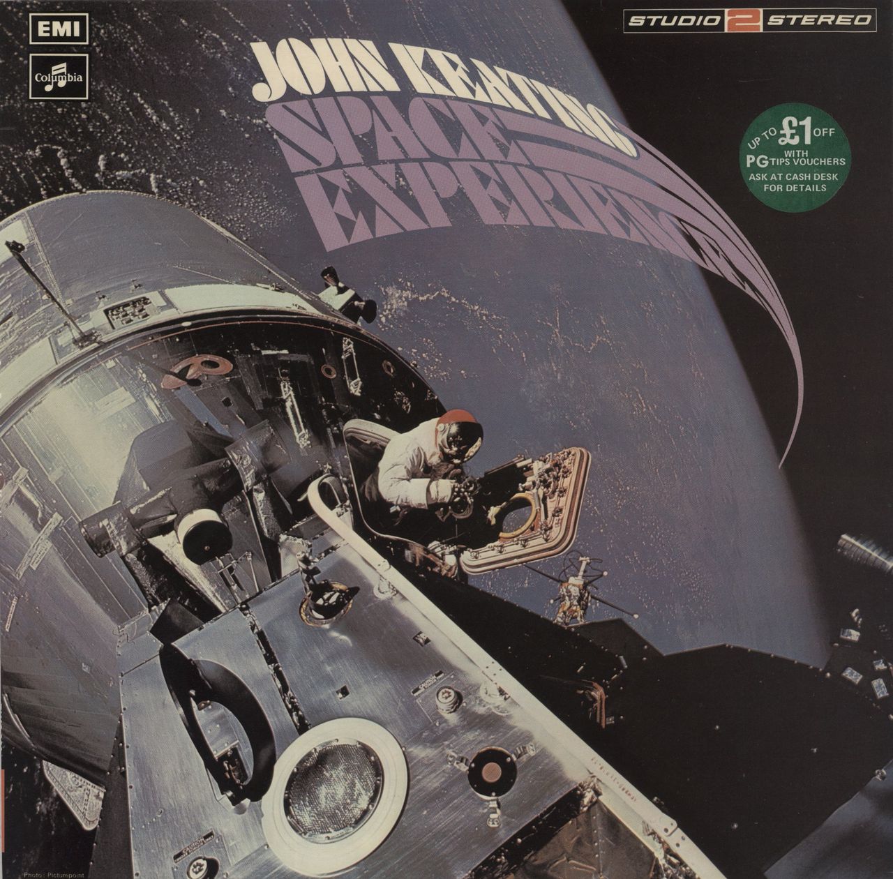 JOHN KEATING Space Experience (1972 UK 10-track Studio 2 Stereo LP, created & produced by John Keating & featuring the classic E.M.S Synthi VC33 Music Synthesizer, engineered by Peter Vince, fully laminated picture sleeve with vintage priceoffer sticker attached. The sleeve and vinyl remain in Near Mint condition TWO393)