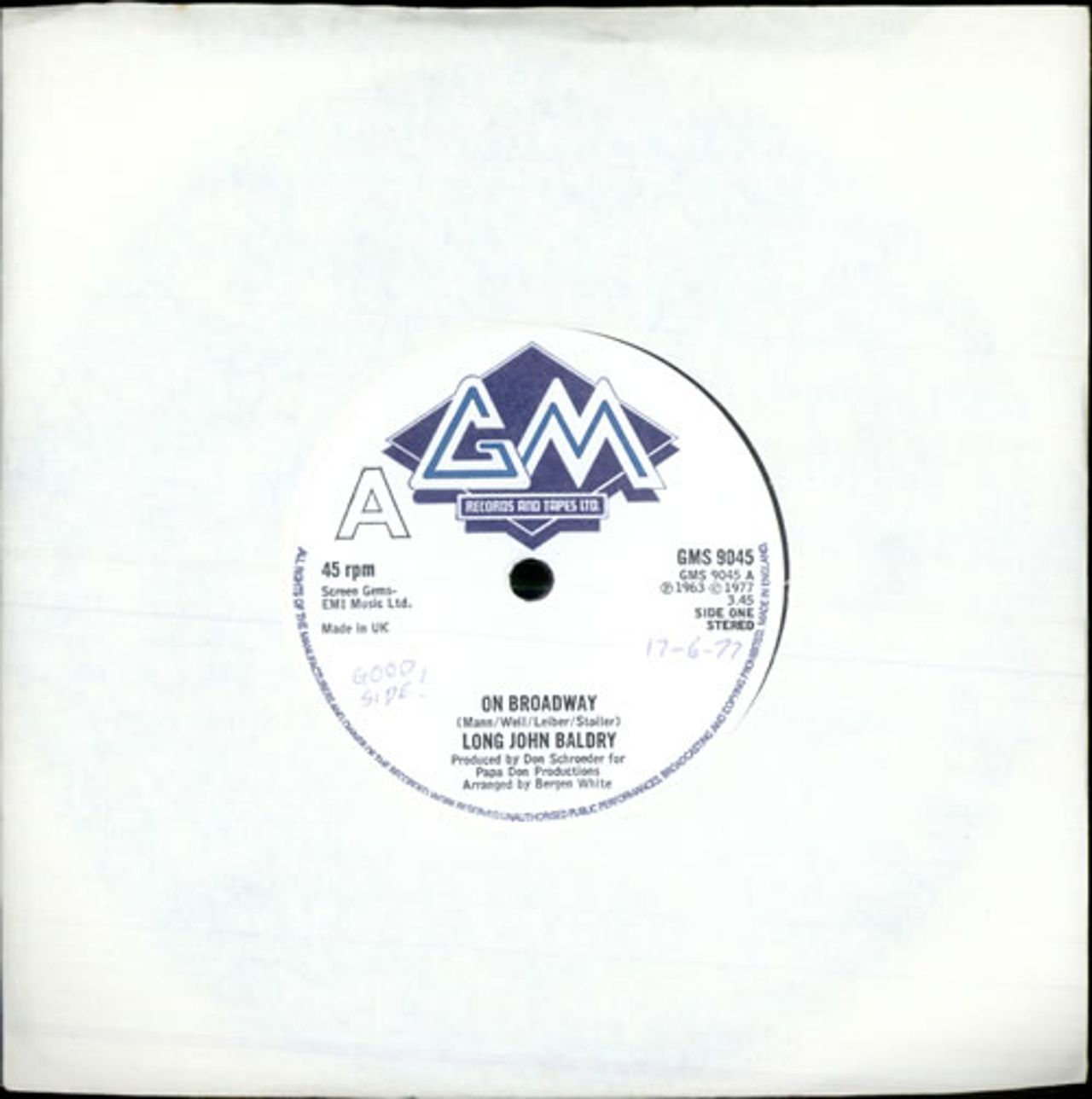 LONG JOHN BALDRY On Broadway (1977 UK solid centre 7" vinyl