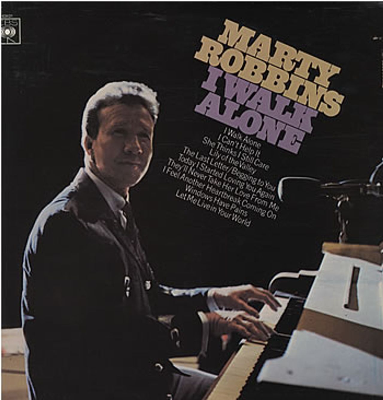 MARTY ROBBINS I Walk Alone (1968 UK 11-track stereo vinyl LP on the smooth orange CBS label, front laminated picture sleeve. The sleeve shows light wear and the vinyl has little sign of play)