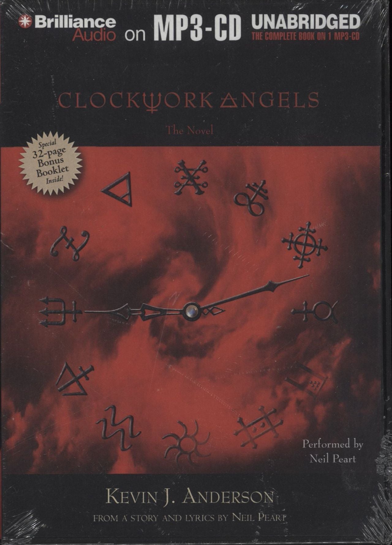 NEIL PEART Clockwork Angels The Novel (Rare 2012 US MP3-CD featuring the complete Kevin J Anderson & Neil Peart unabridged book on one CD, performed by Neil Peart. International bestselling author Kevin J Anderson teams up with Rush lyricist and drummer Neil Peart to expand the story set out in Clockwork Angels, the twentieth studio album by the legendary rock band. This item remains SEALEDfrom new and in Mint condition)