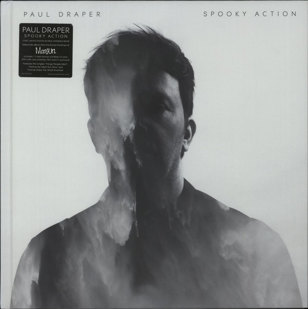 PAUL DRAPER Spooky Action (2017 UK Deluxe hardback book triple disc issue of the solo debut from the Mansun frontman, comprising the 11-track album including the singles Feeling My Heart Run Slow, Friends Make The Worst Enemies and Things PeopleWant plus 2 Bonus discs containing an 11 track outtakes CD, a DVD with documentary film and 5.1 Surround. Housed in a 44-page book, which shows minimal wear, whilst the discs remain in Near Mint conditon KSCOPE530)