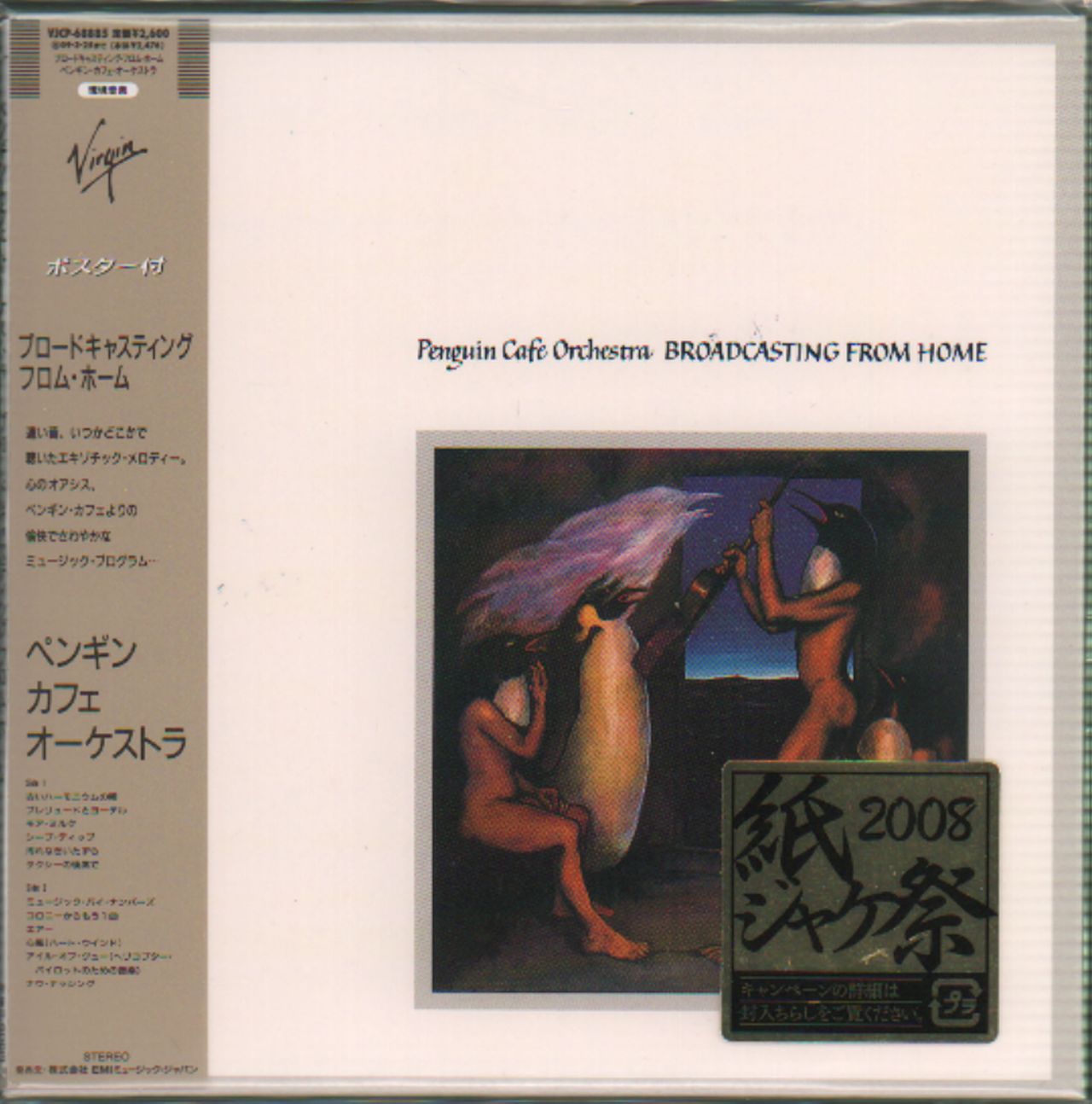 PENGUIN CAFE ORCHESTRA Broadcasting From Home (2008 Japanese limited edition 12-track CD album released as part of the 'Virgin Charisma' series, originally released in 1984, presented in a mini-LP style replica card picture sleeve, complete with fold-out Japanese/English text lyricsheet & obi-strip. Wonderful mix of naive classicalisms, world music, folk and ambience that includes the advertisers fave 'Music For A found Harmonium' - essential. This copy is in superb 'as new' condition VJCP-68885)