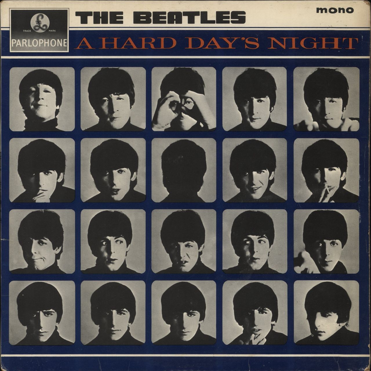 THE BEATLES A Hard Day's Night (Rare 1964 UK first press 13-track MONO vinyl LP on the black & yellow Parlophone label with 'Sold In The UK', 'Recording First Published' & 'Parlophone Co' label text, complete with 'Emitex' inner & Garrod & Lofthouse front laminated flipback picture sleeve with mid sized 'mono' logo on the front & rounded ended flipbacks, & 'Patents Pending' text on the bottom flip PMC1230)