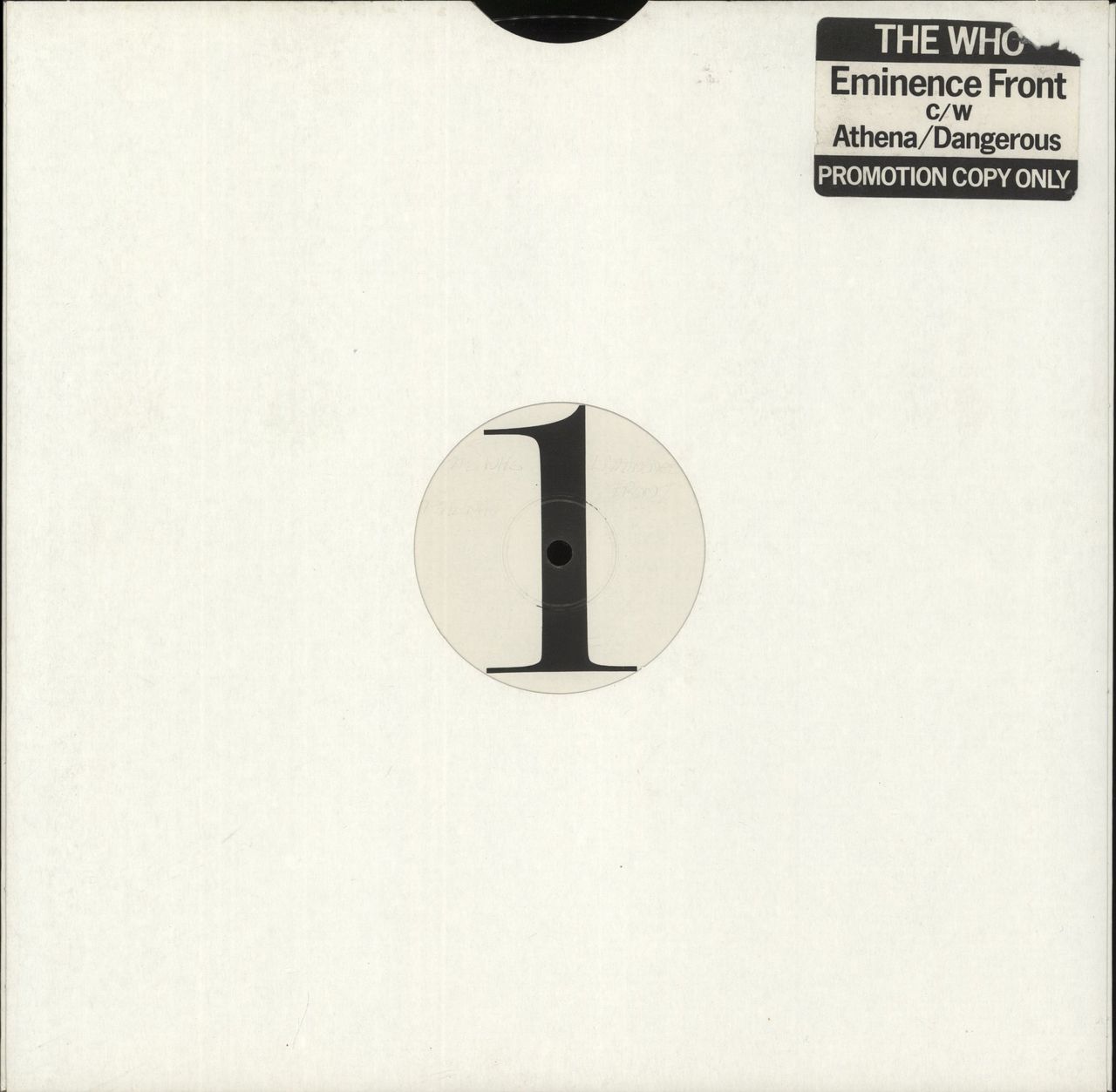 THE WHO Eminence Front (1982 US 3-track promotional vinyl 12" single including 4:05 Edit and 5:35 LP Versions, housed within a plain custom stickered sleeve. The sleeve shows a small tear to the sticker and the vinyl shows very few signs of play; remaining in Excellent condition WHOX6A2420)
