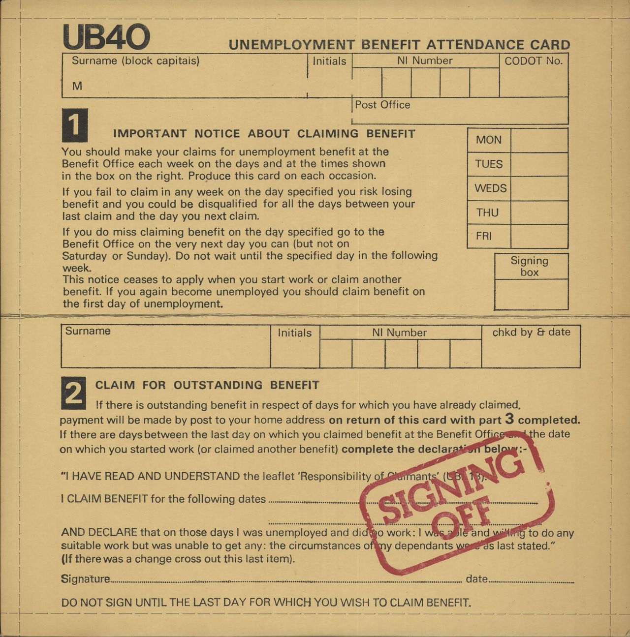 UB40 Signing Off (Limited Edition 1980 Italian 10-track LP, complete with the bonus 3-track vinyl 12" containing Madam Medusa, Reefer Madness & a version of Billie Holiday's Strange Fruit, textured benefit form picture sleeve with album creditinners. The sleeve shows just light age wear & the vinyl discs are Excellent with just a couple of hairlines as evidence of play UB-1)