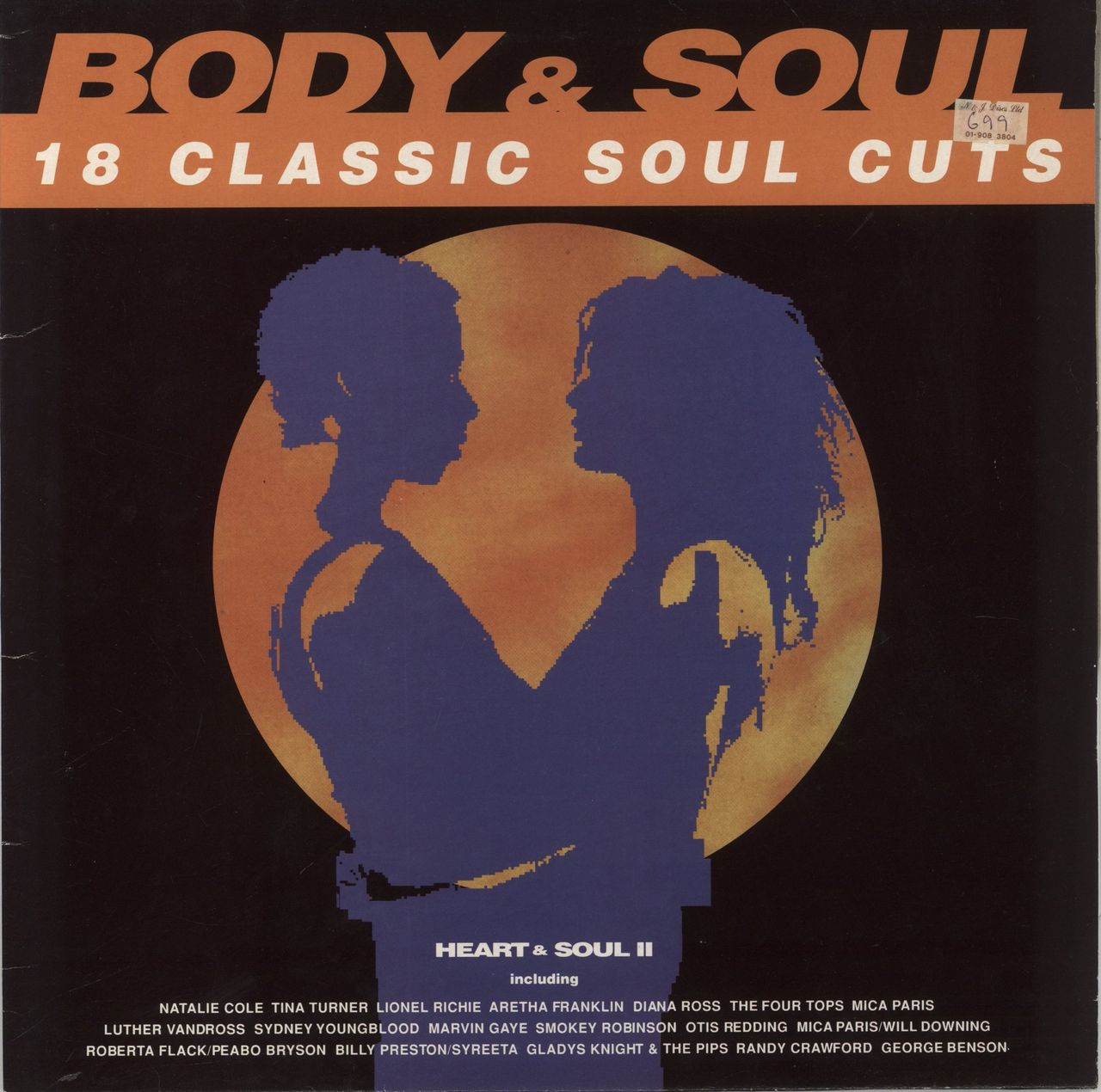 VARIOUS Body & Soul: Heart & Soul II (1990 UK 18-track classic soul compilation LP featuring Aretha Franklin, Tina Turner, Marvin Gaye, Otis Redding, Lionel Ritchie, Diana Ross, The Four Tops & more. Picture sleeve comes with record label insert. The sleeve shows a little shelf wear and the vinyl is Excellent with the odd cosmetic scuff and few signs of play)