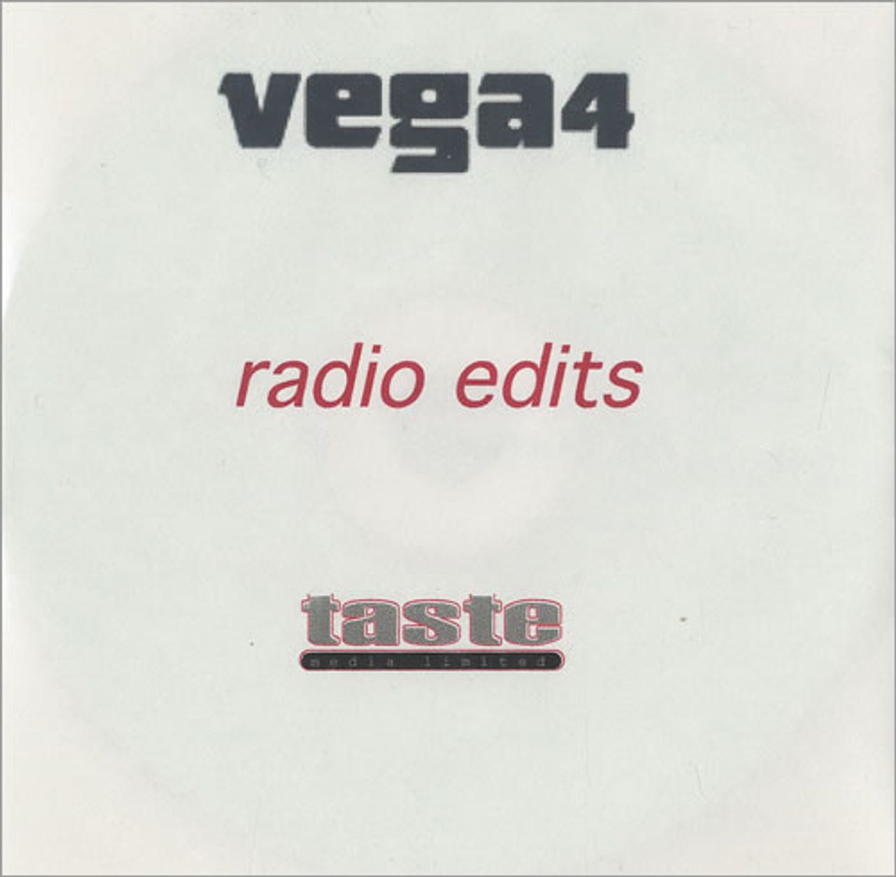 VEGA4 Radio Edit Sampler (2001 UK 4-track promotional-only CD-R acetate of Radio Edit singles released from their debut album Satellites. Includes the tracks Radio Song, Sing, When Love Breaks Down and Drifting Away Violently. Custom printed Taste Media disc with wrap around title/tracklisting sleeve)