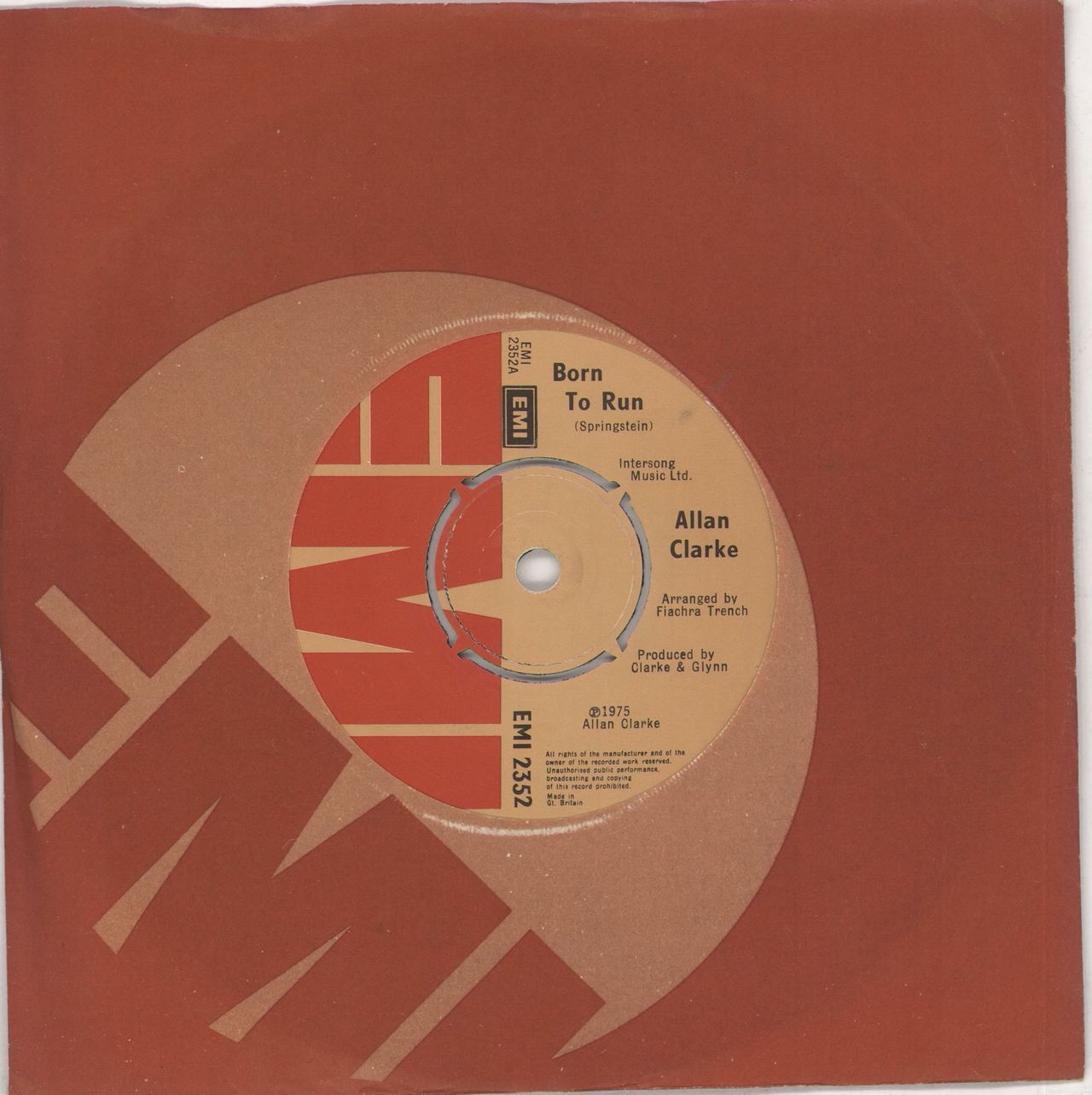 ALLAN CLARKE Born To Run (1975 UK 7" vinyl single with intact four prong centre - featuring his cover version of the Bruce Springsteen track [incorrectly credited as Springstein on the label], also including Why Don't You Call, EMI die cut paper sleeve EMI2352)