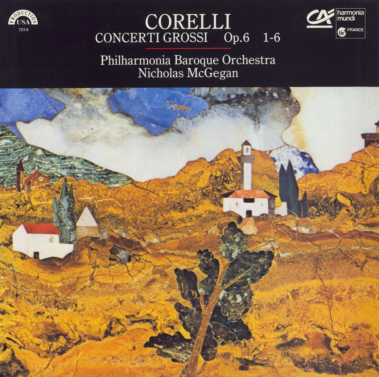 NICHOLAS McGEGAN conducts THE PHILHARMONIA BAROQUE ORCHESTRA Concerti Grossi Op. 6 1-6 (1989 US TAS listed stereo audiophile LP, picture sleeve with extensive notes in English, French & German. The sleeve is Excellent with the odd tiny paper fracture to an edge & the vinyl remains near 'as new' HMU7014)