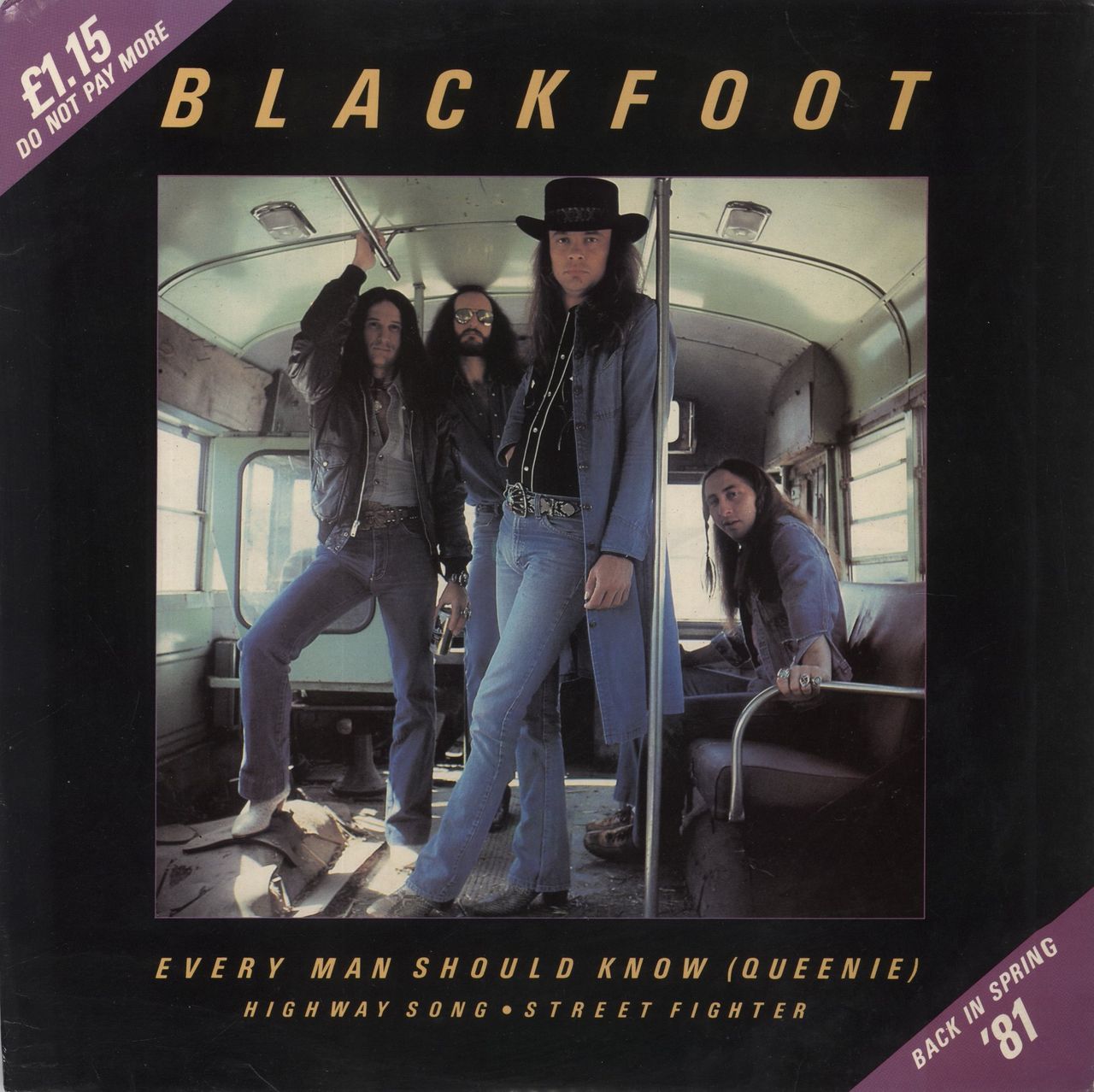 BLACKFOOT Every Man Should Know [Queenie] (1980 UK 3-track 12" vinyl single also including Highway Song and Street Fighter, picture sleeve. The sleeve has just moderate general wear whilst the vinyl shows little signs of play K11636T)