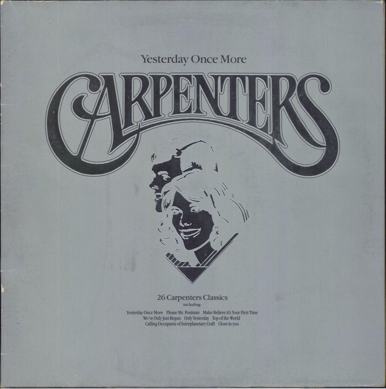 CARPENTERS Yesterday Once More(1984 UK 26-track double vinyl LP compilation featuring everything from the lilting Yesterday Once More through to the fiery guitar break in Goodbye To Love. Housed in a silver-embossed gatefold picture sleeve. The deletion hole punched sleeve shows some noticable shelfwear, whilst the vinyl has a few light cosmetic surface scuffs and only light signs of play SING1)
