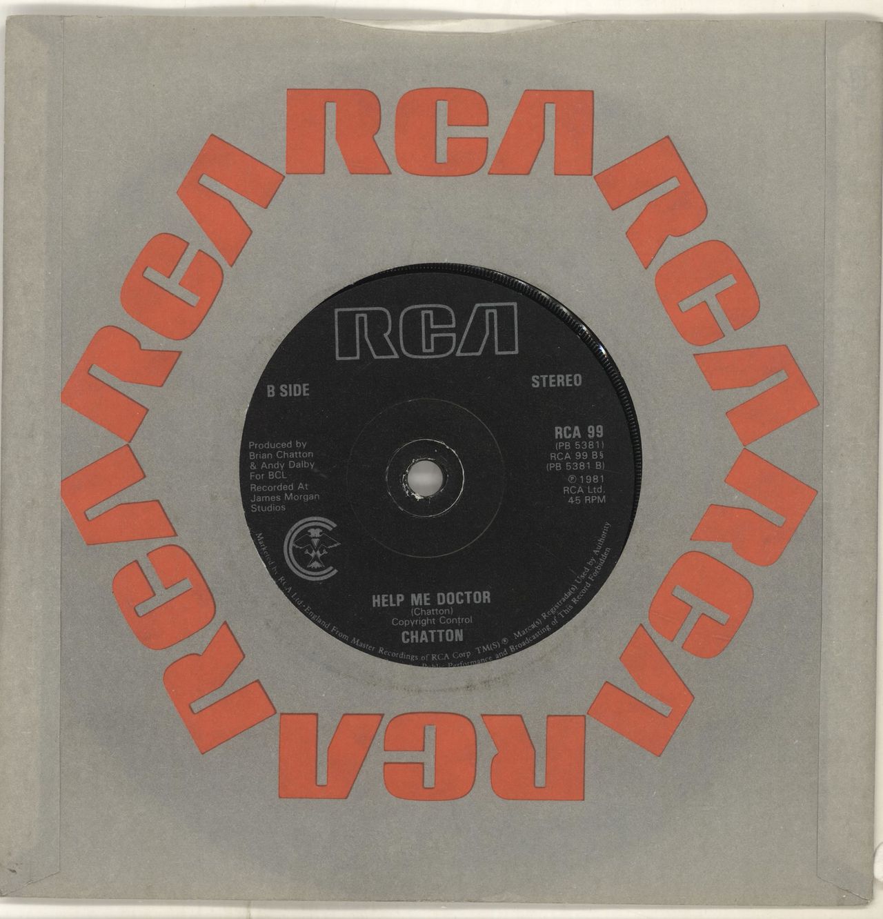 CHATTON I'll Give You What You Want (1981 UK RCA solid centre 7" vinyl single, also including Help Me Doctor, with both tracks co-produced by Brian Chatton & Andy Dalby, RCA company die-cut sleeve. The vinyl looks barely played CA99)