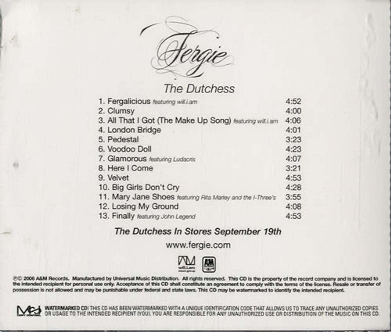 FERGIE The Dutchess (2006 US promotional-advanc 13-track CDR