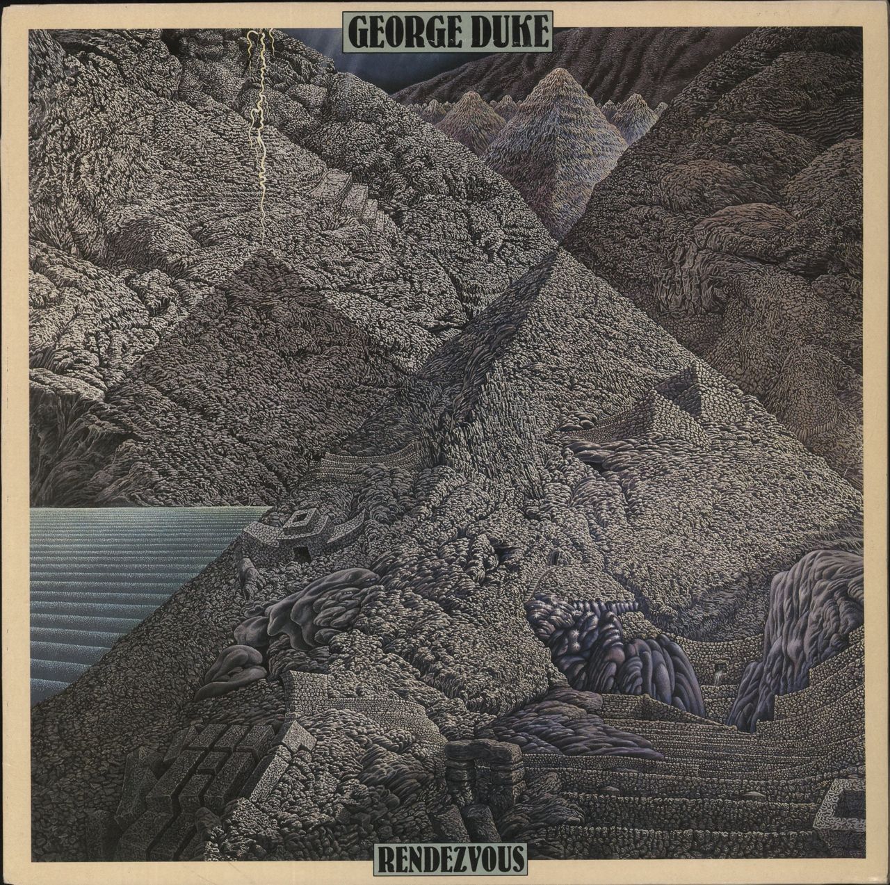 GEORGE DUKE Rendezvous (1984 Dutch 9-track LP from the late keyboard pioneer, housed in a picture sleeve with artwork by Abdul Mati Klarwein, complete with album credits inner. The sleeve has been gold stamped 'Not For Sale' on the back showsminor storagewear & the vinyl is Excellent with some faint paper hairlines to show play EPC26059)