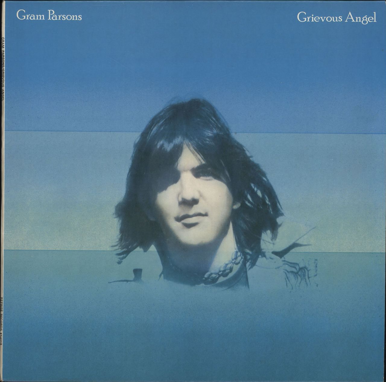 GRAM PARSONS with EMMYLOU HARRIS Grievous Angel (1974 UK tan 'steamboat' label 9-track LP, made shortly before his untimely death, wonderful sky blue matt picture sleeve. The sleeve shows very little of its age & the vinyl grades EX/EX- with somepaper hairline scuffs not affecting play - a nice, if not mint, copy of this fine swan song album K54018)