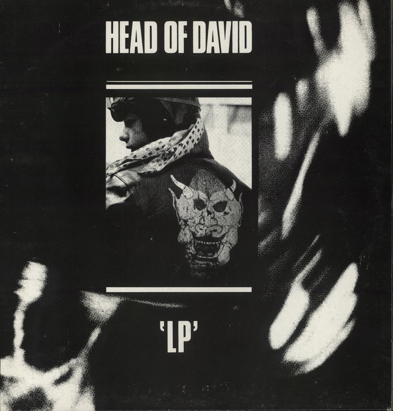 HEAD OF DAVID 'LP' (1986 UK 8-track vinyl LP, the debut album from the British heavy metal band which was released shortly before [ex-Napalm Death / pre-Godflesh drummer] Justin Broadrick joined the band. The black & white picture sleeve [VG]has some shelfwear evident but comes with the illustrated lyric inner and the vinyl remains in excellent condition with only light signs of play)