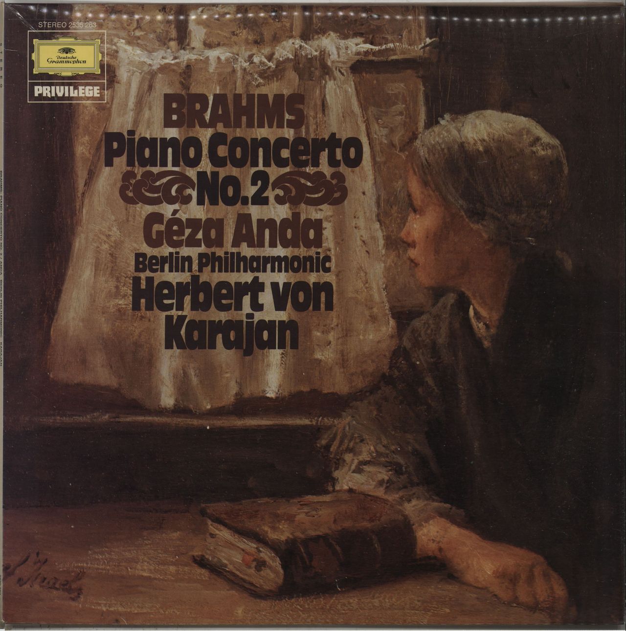 HERBERT VON KARAJAN conducts THE BERLIN PHILHARMONIC ORCHESTRA Piano Concerto No. 2 (1977 UK DGG small tulip label stereo LP, pressed in Germany for the UK market & housed in a British manufactured fully laminated picture sleeve. The sleeve shows minimal wear and the vinyl appears barely played)
