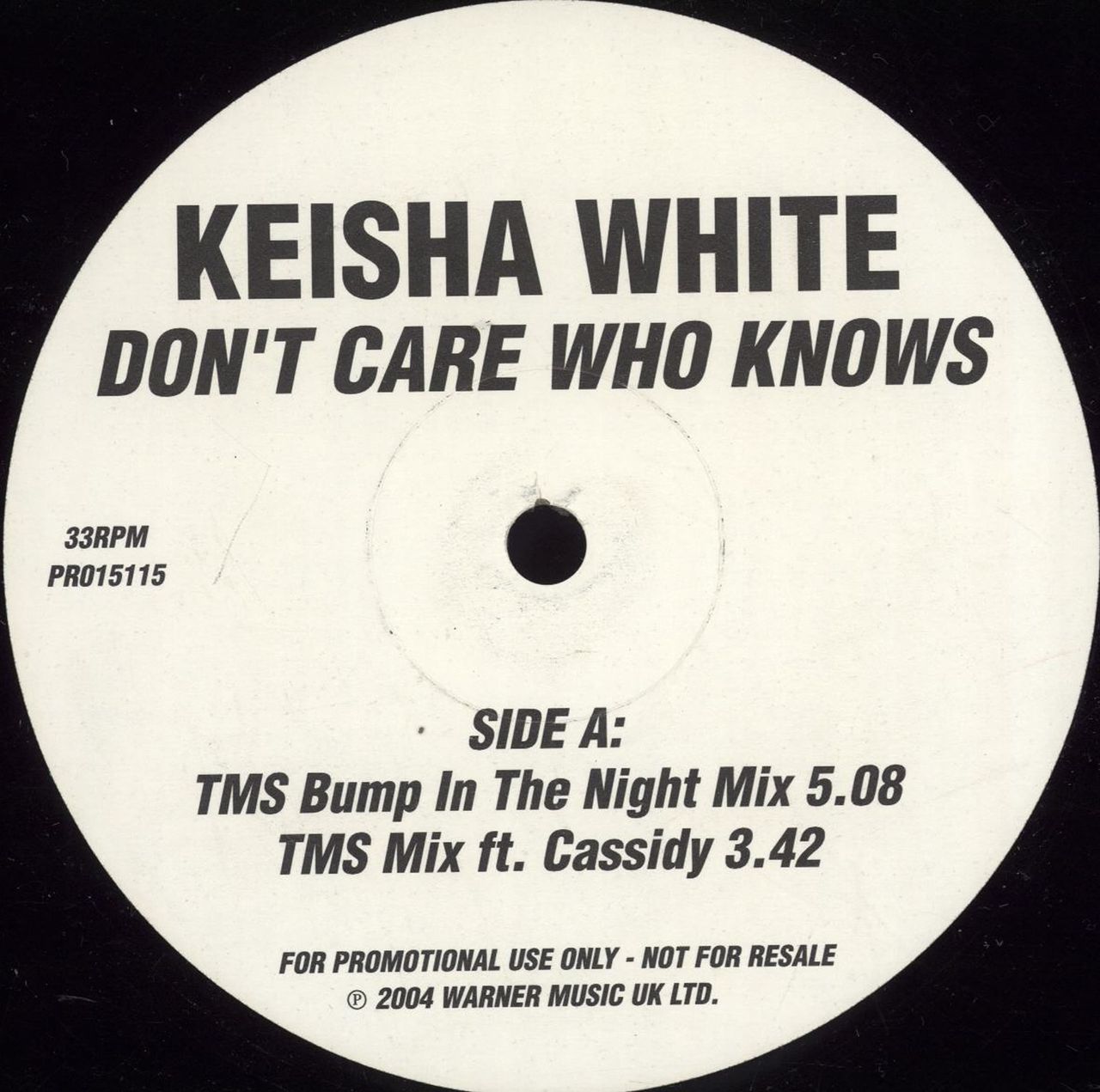 KEISHA WHITE Don't Care Who Knows (2004 UK 4-track promotional vinyl 12" including TMS Bump In The Night Mix, TMS Mix With Cassidy and TMS Grime Don't Pay Mix, custom printed labels and plain die-cut card sleeve PRO15115)