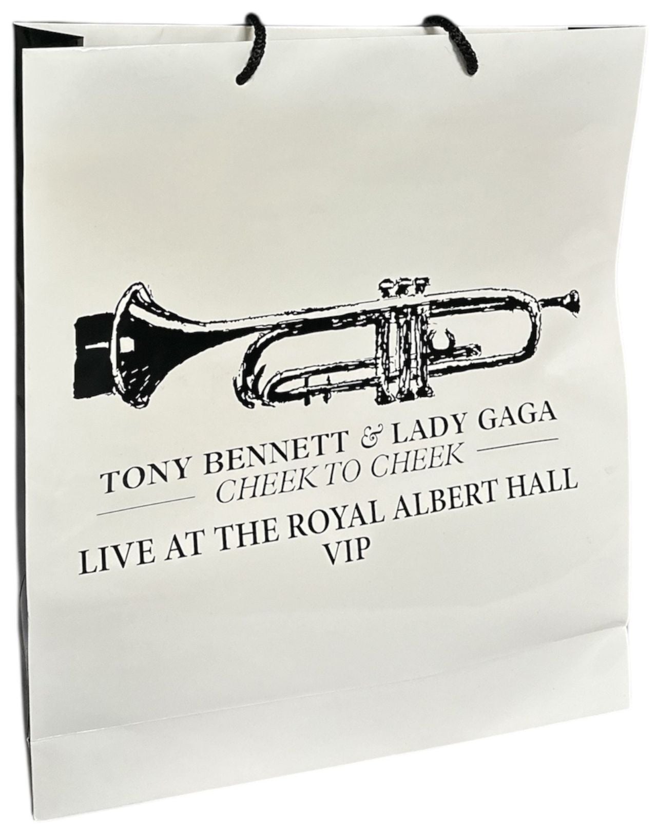 LADY GAGA Lady Gaga & Tony Bennett Royal Albert Hall Gala Bundle (This bundle brings together original memorabilia from A Gala Evening with Lady Gaga & Tony Bennett at the Royal Albert Hall, London [8th June 2015] - a special charity concert in support of WellChild. The pair took to the stage to perform selections from their Grammy-winning jazz collaboration Cheek to Cheek, delivering a night of elegance, swing, and remarkable vocal chemistry inside one of the world's most iconic venues. Included in this bundle are a front-row ticket [Row 1], the official event laminate with branded lanyard, an etched glass champagne flute presented in its gift box and the corresponding branded shopping bag - each piece offering a tangible link to a truly intimate evening shared with two musical greats. A front-row keepsake from the night Gaga and Bennett turned the Royal Albert Hall into their own jazz club)