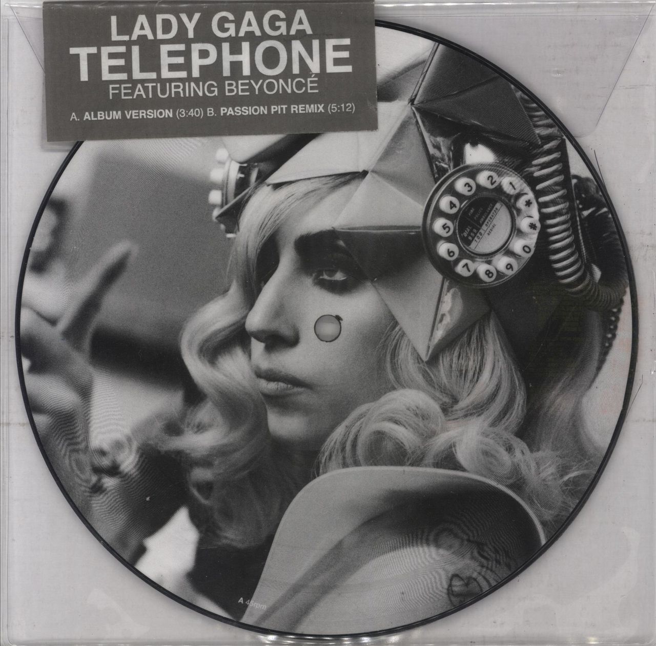 LADY GAGA featuring BEYONCE Telephone (Limited Edition 2010 UK/EU 7" Picture Disc single, the Rodney Jerkins-produced hit which saw Beyoncé return the favour for Lady Gaga's appearance on Video Phone. Also includes a remix from PassionPit, custom stickered PVC sleeve. The sleeve shows minimal wear, the sticker shows a little creasing, whilst the disc remains in Near Mint condition with no scuffs, hairlines or any otheer signs of play visible)