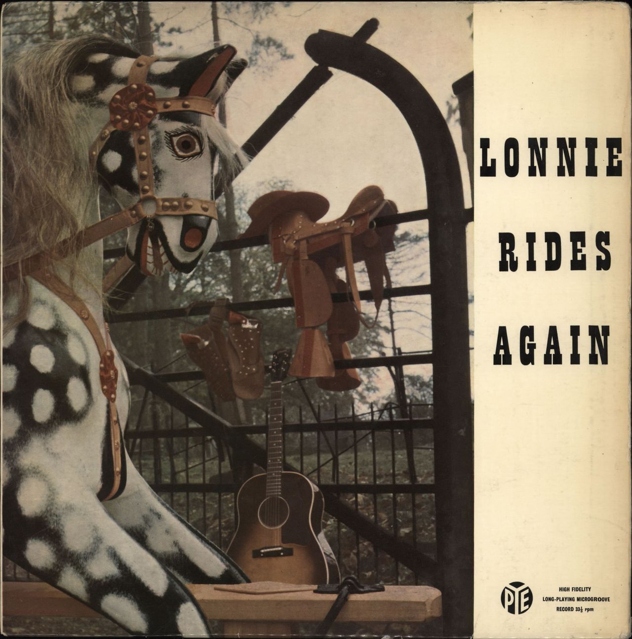LONNIE DONEGAN Lonnie Rides Again! (1959 UK 12-track Mono LP of skiffle gems, front laminated flipback picture sleeve. The sleeve shows a little discolouration in places and not surprising ninor edge scuffing but remains respectable and the vinyl has defied time and shows few signs of play NPL18043)