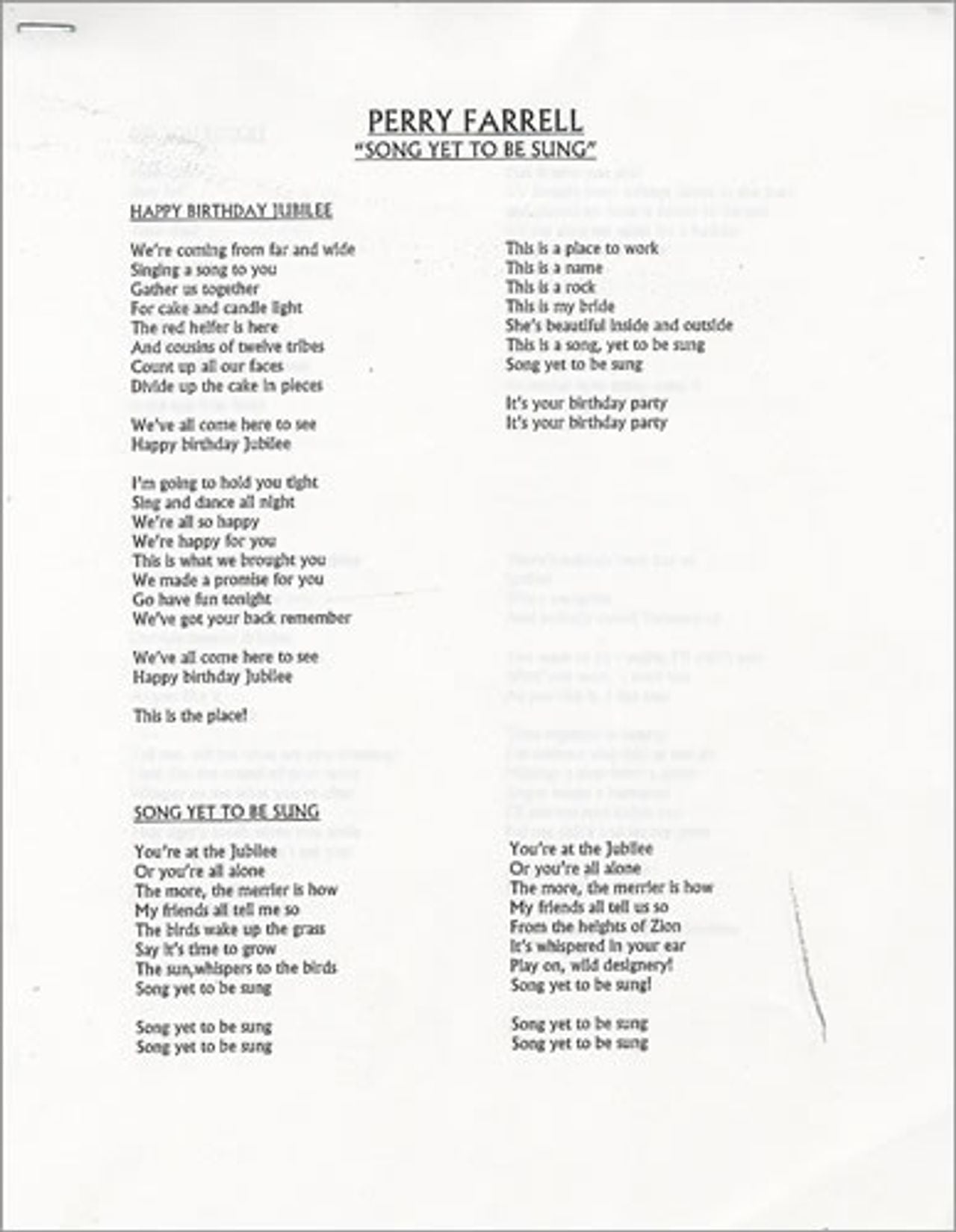 Perry Farrell Song Yet To Be Sung US Promo Press pack