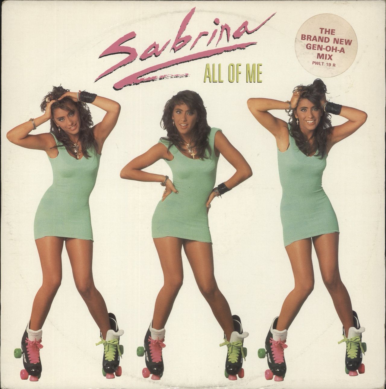 SABRINA All Of Me (1988 UK 12" vinyl single featuring Boy O Boy Mix and Instrumental Version. The picture sleeve has its original hype sticker attached and shows minor shelfwear and the vinyl looks barely played PWLT19)
