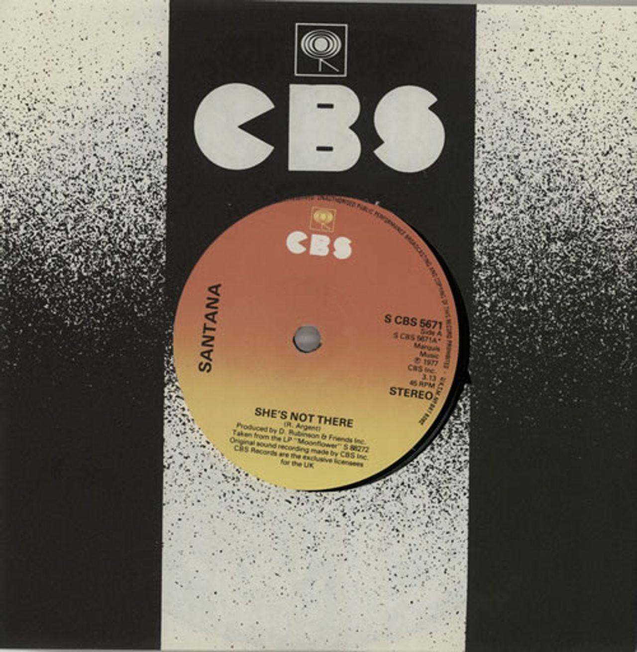 SANTANA She's Not There (1977 UK solid centre 7" vinyl single, also including Zulu, CBS company die cut paper sleeve)